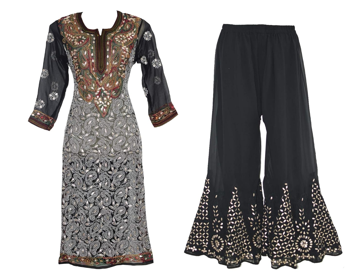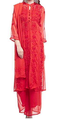 Buy Sapra Enterprises Women S Chikankari Embroidered Georgette Long A Line Stitched Kurti Dupatta Palazzo Set Ish005 Red White Black Small At Amazon In You can find a range of long pakistani kurtis with palazzo pants online from brands like rama.