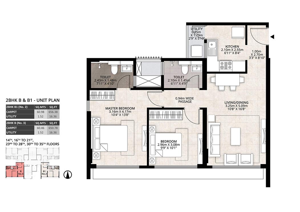 Plan 2 Bhk Flat In Mumbai : It has area of 970 sqft and is available at a rent of rs.