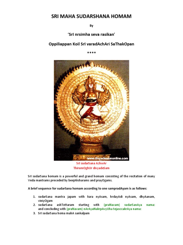Sudarshana Homam Manual : Sudarshana homa relief from unexplainable diseases and illnesses.